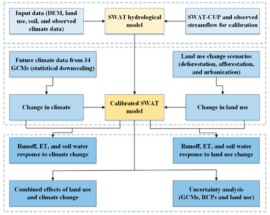 Specifically, our aim was to evaluate the impacts of climate change and land use change on hydrology in Wooroloo Brook catchment, SWA, as a case study. Hence, the components of this study were to: (1) evaluate the performance of the SWAT model in this catchment and assess the impacts of future climate and land use changes, both separately and in combination, on hydrologic variables (runoff, actual evapotranspiration, and soil water); and (2) quantify the contribution of GCM, RCP, and land use scenarios to the overall uncertainty in future changes of hydrologic variables.