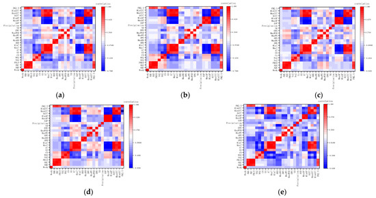 Correlation coefficient heat plot. (a) Wuzhong; (b) Yinchuan; (c) Zhongwei; (d) Shizuishan; (e) Guyuan.