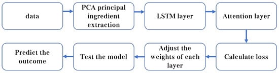 LSTM solves the problem of gradient disappearance and gradient explosion during long sequence training very well. PCA is used to reduce the dimensionality of the data to speed up the training speed of the model with the smallest amount of lost information. Adding the attention mechanism can better capture important features of long time series data. The model adopts the keras deep learning framework architecture network model, integrates the three algorithms of PCA, attention mechanism, and LSTM, and establishes an LSTM model based on PCA and attention mechanism; the model framework is shown in Figure 7.