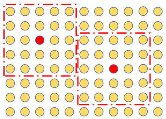 Spatial neighborhood of data pre-processing. The red dashed line indicates the width of the selected pixels’ spatial neighborhood.