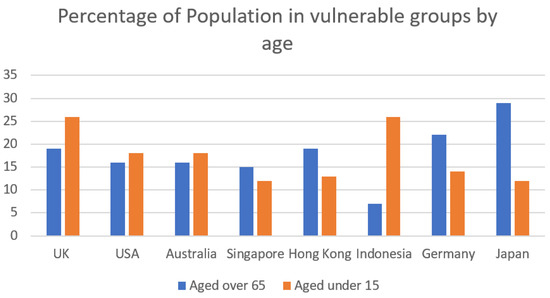 The percentage of the population who are aged 65 years and older is increasing globally. That said, children are also a vulnerable group in the population. In countries where heatwaves are occurring more frequently in medium latitudes, there are higher proportions of older populations (Figure 3).