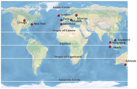 Research in South-East Asia, particularly Hong Kong and Singapore, where there are the most high-rise, high-density cities in the world reflect these findings. Research undertaken in this region highlights the association between high-rise, high-density living and increased morbidity and mortality particularly in vulnerable groups such as the aged, medically compromised, or those who are of low socio-economic status [54,60,79,80]. Of note, heatwaves are occurring in cities in medium latitudes, not just latitudes that experience warmer weather routinely (Figure 3).