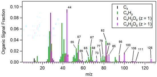 - Aiken, A.C.; Decarlo, P.F.; Kroll, J.H.; Worsnop, D.R.; Huffman, J.A.; Docherty, K.S.; Ulbrich, I.M.; Mohr, C.; Kimmel, J.R.; Sueper, D.; et al. O/C and OM/OC ratios of primary, secondary, and ambient organic aerosols with High Resolution Time-of-Flight Aerosol Mass Spectrometry. Environ. Sci. Technol. 2008, 42, 4478–4485. [Google Scholar] [CrossRef]