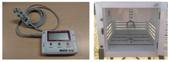 Long-term multi-point test data were obtained from 20 temperature and humidity sensors (Table 1). The measuring instrument used a temperature and humidity recorder (T&D Corporation), and the frequency of data recording wase set to 10 min (Figure 2). In order to avoid both rain and direct sunlight and to satisfy the need to record data in a naturally ventilated state, the measuring instruments were installed in instrument shelter. All the instrument shelters were placed in the playgrounds of primary schools or in parks within Sendai city (Figure 1c). To avoid local effects on measurements, the instrument shelters were placed away from trees and building walls. Twenty measurement points extended inland from the city coast. A total of six measurement points were set up within 7 km from the coast, with four points inland after 15 km, and the rest of the points were distributed in the city.