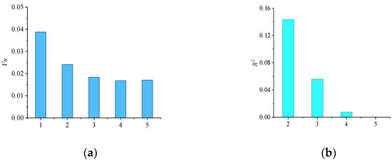 From the parameter coefficient of the correlation formula, the uniformity of velocity distribution decreases with a reduction in airway arc length and airway height. Therefore, the smaller L and H should be selected to obtain smaller velocity distribution uniformity. This finding is in line with the Taguchi method’s analysis findings. The correlation degree obtained by using the predicted correlation formula is shown in Figure 6b by comparing the velocity distribution uniformity obtained via numerical simulation with that obtained via the predicted correlation formula. In accordance with the figure analysis, the maximum error between the calculated and numerical simulation results does not exceed 16.74%. Therefore, under the action of multifactor coupling, the prediction of the velocity distribution uniformity of the fluid in the fluidized bed exhibits a small error and a high correlation.
