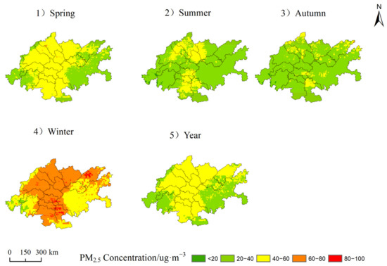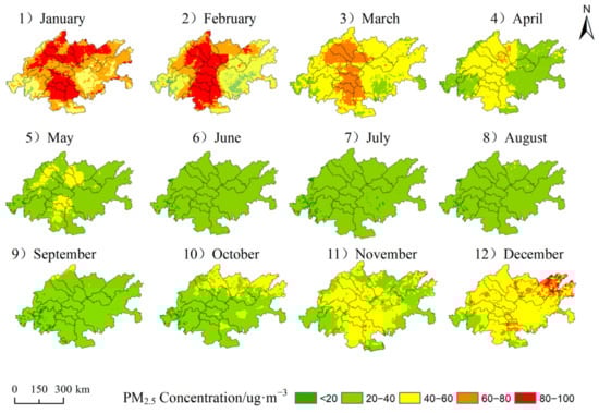 3.3. Spatiotemporal Distribution of PM2.5 Concentration in the Region