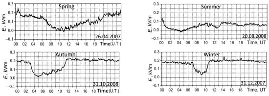 Figure 2. Diurnal variations in the electric field at the high-mountain Tien-Shan station under “fair weather” conditions for different seasons.
