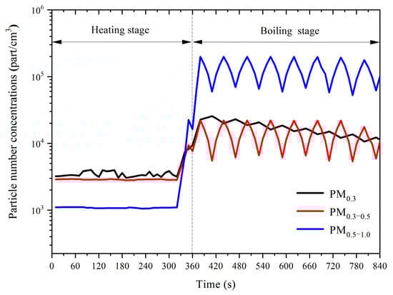 Variations of particle number concentrations during boiling water.