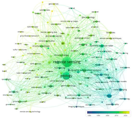 Keywords found in Scopus while looking for works with the keywords “Remote sensing” and “Geology”. Graphic made with VOSviewer.