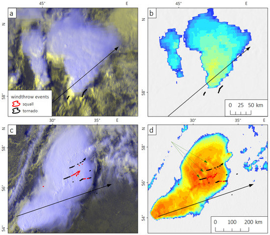 - Shikhov, A.N.; Chernokulsky, A.V.; Azhigov, I.O. Spatio-temporal distribution and origins of windthrow events in the forest zone of Western Siberia in 2001–2020. Sovrem. Probl. Distantsionnogo Zondirovaniya Zemli Iz Kosm. 2022, 19, 186–202. (In Russian) [Google Scholar] [CrossRef]