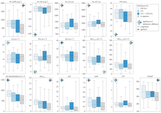 3.2. Analysis of Environmental Variables Differences for Various Events, Types of Storms, and Types of Signatures