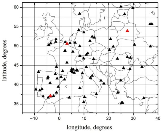 We applied STOI to estimate AOD in Europe during the 2015–2016 period. We considered data from 86 European AERONET sites and the layout of the region and location of the sites are shown in Figure 1.