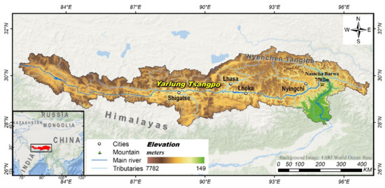 - Xiaobu, C.; Cheng, Q.; Jie, H. Soil Erosion and Its Countermeasures in the Middle Reaches of Yarlung Zangbo River in Tibet Autnomous Region. Bull. Soil Water Conserv. 1996, 5, 48–53. [Google Scholar] [CrossRef]