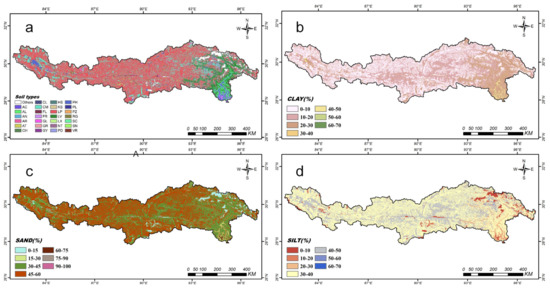 - Food and Agriculture Organization of the United Nations; International Institute for Applied Systems Analysis. China Soil Map Based Harmonized World Soil Database (HWSD) (v1.1) (2009); Food and Agriculture Organization of the United Nations (FAO): Rome, Italy, 2019. [Google Scholar]