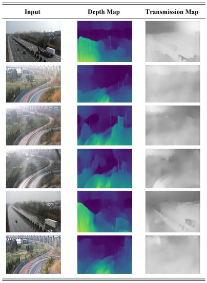 - The two modules, i.e., TEM and DEM, work separately. Limited by this strategy, the obtained transmission map and depth map are relatively independent. Nevertheless, for a given image, these items should be highly correlated. Moreover, bringing and into Equation (6) makes the network not end-to-end, which in turns constraints the efficiency.