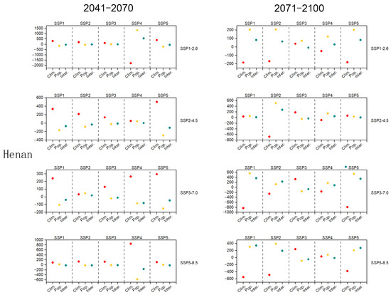 In summary, for Henan, future climate change and population shifts will greatly affect population exposure. Under the same population prediction, the exposure of the population to extreme precipitation will gradually increase with global warming. Therefore, limiting global warming to reduce the detrimental effects of climate change and adopting rational development pathways are essential.
