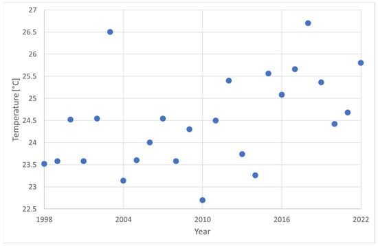 Average of all the daily maximum temperatures of the period May to September for the period of 1998 to 2022.