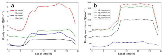 - The effects of AH on sensible heat fluxes and the planetary boundary layer height are generally consistent. Both QF and QB increase the sensible heat flux by about 20 Wm−2 and the planetary boundary layer height by 20–40 m in urban areas at night, while the effects of QV are small. In the daytime, QF increases the sensible heat flux in urban areas by more than 30 Wm−2, with QB and QV both contributing 20–30 Wm−2, and the effects on the planetary boundary layer height by different AH components are quite similar.