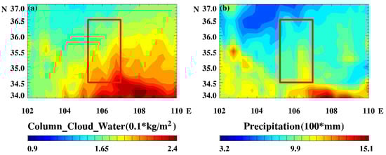 Mountainous terrain exerts an obstructive and uplifting effect on airflow, leading to significant changes in the dynamics and thermodynamics of transporting airflow, thereby influencing regional cloud and precipitation weather [,,,]. There are also notable differences in cloud water resources and precipitation weather between windward and leeward slopes [,,,]. For the water-scarce northwest region of China, the high-value zones of atmospheric water resources and cloud cover are primarily distributed along mountainous areas [,,,]. This indicates that the topography of the region has a significant influence on the distribution of cloud water resources and precipitation. Compared with other major mountain ranges in the northwest region, the Liupan Mountains (LMs) are characterized by complex terrain located on the eastern Tibetan Plateau and the northwestern edge of the Loess Plateau. It serves as an important water supply conservation area in the eastern northwest. The study of cloud water resources and precipitation in the region has significant implications for regional rain enhancement, drought resistance, and ecological environmental protection.