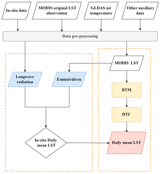 - In this study, we used the land surface temperature data estimated by the RTM method and the surface temperature data of the day-by-day all-weather surface temperature dataset (TRIMS LST) published by Zhang et al., to generate 1-km surface temperature data four times a day [17].