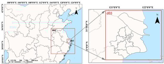 The WRF-CAMx-OSAT simulation method was employed, using the WRF 3.9.1 (Weather Research and Forecasting) model to provide meteorological fields for the CAMx model. The parameterization schemes for WRF and CAMx can be found in Table S1. In Figure 1, the WRF simulation adopted a three-level nested domain with grid resolutions of 9 km, 3 km, and 1 km, respectively. The center point of the model projection was set at (31.9° N, 118.51° E). The first domain covered the East China region, the second domain covered the Yangtze River Delta region, and the third domain focused on the Shanghai area. Localized settings for the main parameters of the WRF model were applied to match the climatic background of Shanghai. The initial and boundary conditions for the WRF model were obtained from the Global Final Analysis data, provided by the National Centers for Environmental Prediction (NCEP) in the United States. The data were available at a horizontal resolution of 1 × 1 and were retrieved from the NCEP FNL Operational Model Global Tropospheric Analyses dataset, continuing from July 1999 (https://rda.ucar.edu/, accessed on 14 April 2023).