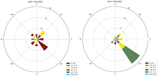 Wind Speed and Direction Comparison between April–May 2021 and April–May 2022.