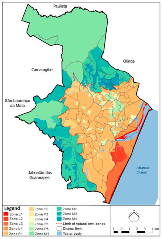 Currently, Recife is divided into two main zones by Law No. 17,511, 29 December 2008. The Built Environment Zone (BEZ) predominates with built-up surfaces of the city, while the Natural Environment Zone (NEZ) is characterized by protected areas mainly covered by water bodies and vegetation. There are three more special zones in these main zones (by Law No. 17,511, 29 December). The first one is the Special Zone of Social Interest (SZSI), which is specifically designed to cater to areas of high socio-environmental vulnerability. The second is the Special Zone of Historical Preservation (SZHP), which is dedicated to preserving the city’s rich history and culture. This zone contains areas and buildings of significant historical interest that must be protected and preserved for future generations. The third zone is the Special Zone of Specific Guidelines (SZSG), which marks commercial centers of the city. This zone is essential for the city’s economic growth and identifies the areas of businesses development.