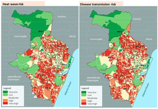 Maps of heat wave and disease transmission risks in Recife. Source: adapted from [45].