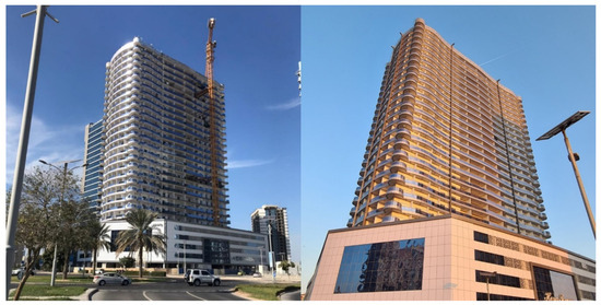 - Fam Properties Hera Tower Apartments—Dubai Sports City by Titans Development. 2023. Available online: https://famproperties.com/dubai-sports-city/hera-tower-apartments (accessed on 10 September 2023).
