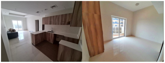 The focus of this study was to measure IAQ in the Hera Tower located in Dubai Sports City just before its completion (Figure 1). During the measurement phase, the building was in a pre-inspection stage, with finishing work nearing completion [62]. The move-in process had been scheduled for 22 January 2022, and the IAQ measurement was planned 30 days before move-in (2–23 December 2021).