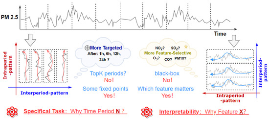 Two key points we addressed to improve the performance of TimesNet for our PM2.5 prediction task. 1. “Specifical Task”: we expect to predict some fixed points of time in the future rather than letting the model find TopK periods in Section 3.2. 2. “Interpretability”: we hope to find the feature that matters most in our PM2.5 prediction task, instead of letting the neural network function as a black box.