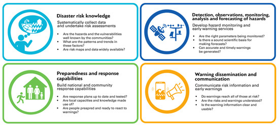 The Four Pillars of Effective Early Warning in the EW4A Initiative. Source: https://www.preventionweb.net/publication/early-warnings-all-executive-action-plan-2023-2027, accessed on 10 September 2023. See also, https://www.undrr.org/early-warnings-for-all, accessed on 10 September 2023.
