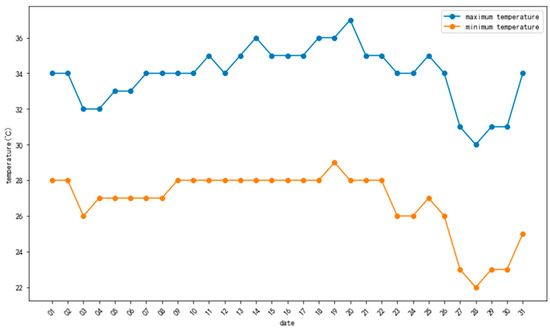 Figure 2 is the temperature chart for Shanghai in August 2016. Table 3. is example of Shanghai meteorological observation data.