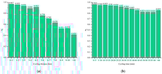 (a) The prediction performance for different cycling distances; (b) the prediction performance for different cycling time.