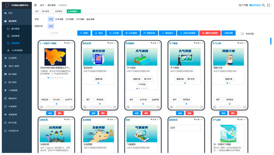As shown in Figure 8, 5G Messaging Cloud Service Platform, including functions such as notification management, reply configuration, 5G menu configuration, transmission management, rich media message editing, and data management, we have successfully implemented a personalized 5G Messaging Cloud Service Platform based on the Loc-PredModel. Our personalized weather service recommendation system aims to provide users with an intelligent, real-time, and tailored meteorological information experience. To achieve this goal, we have designed a variety of 5G message templates for different scenarios, catering to users’ diverse weather information needs. These templates dynamically and automatically combine based on the user’s current context and service variations, allowing flexible deployment of 5G message products for different scenarios. Whether users are on a journey, preparing for outdoor activities, or in need of real-time weather information, we can provide weather services relevant to their specific scenarios, ensuring users receive the latest and most accurate weather information.