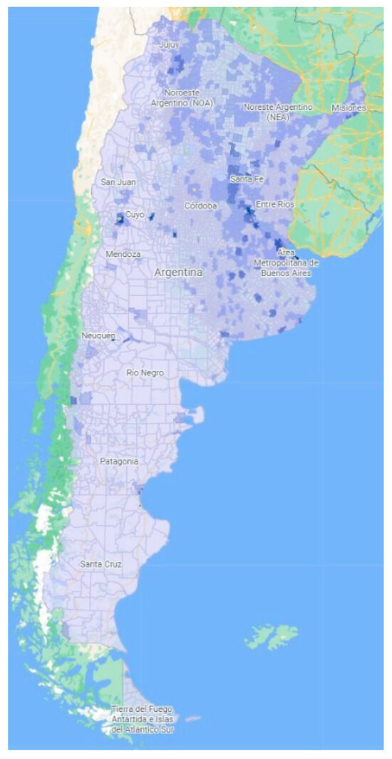 . Source: https://mapa.poblaciones.org/map/142301/#/@-37.231225,-60.149513,5z/l=312801!v0!w0 (Accessed on 6 August 2023).