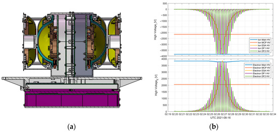 Figure 1b shows the high-voltage scan during the in-orbit test. The velocity variations of the ions and electrons, once obtained, may help invert the absolute potential of the satellite.