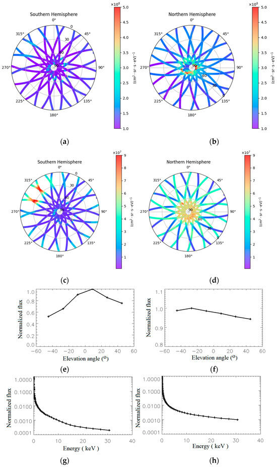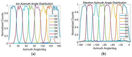For the FOV at the elevation angles of the ion/electron sensor, we selected the ion/electron incidence at different elevation angles by voltage scanning the upper and lower deflection plates of the deflection system. The ion and electron distributions at the elevation angles are shown in