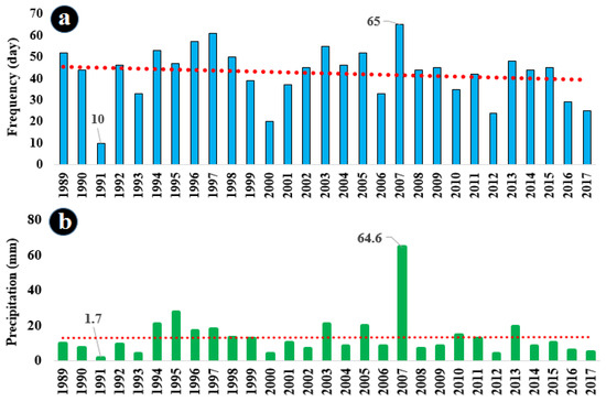 3.1. Statistical Analysis of Summer Precipitation in Southeastern Iran