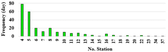 - The number of stations reporting precipitation on each rainy day should equal or exceed four.