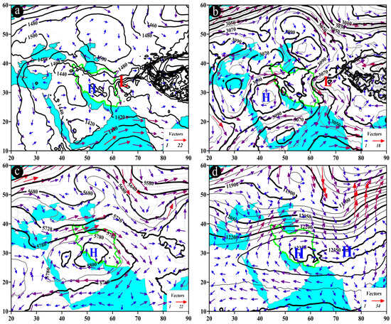 - Saligheh, M.; Sadegineia, A. Investigation Subtropical High Pressure Spatial Variations in Summer Rainfalls of the Southern Half of Iran. Geogr. Dev. Iran. J. 2010, 8, 83–98. [Google Scholar] [CrossRef]