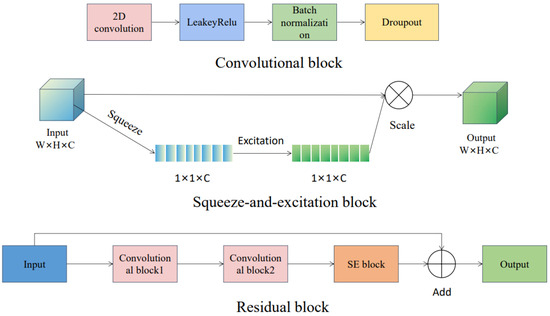 The SE-ResNet model for this study is a further improvement based on the model above. Both models have a similar structure and use the same convolution block, but in the residual block of the SE-ResNet model, a squeeze-and-excitation block is added, which works as a self-attention mechanism. When there are multiple elements put into the model, the squeeze-and-excitation block can choose the importance of each channel through the squeeze and excitation operations, and the weight coefficient is put on each channel with the scale operation to complete the recalibration of the importance of the original channel [34]. The residual block obtains the final output by adding the output of the squeeze-and-excitation block and the input of the residual block.