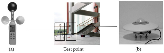 Fixed measurements of thermal parameters were taken at the geometric centers of the 18 courtyards in clear weather from 09:00 to 17:00 in the summer of 2020. A fully exposed open environment near the courtyards was selected as a reference group to measure and record the corresponding thermal parameters, with data recorded every 10 min (Figure 2). Scarlet TWL-1S-Smart Stress Detectors were used to record the following parameters: air temperature (Ta/°C), black globe temperature (Tg/°C), wind speed (WS/(m/s)), relative humidity (RH/%), and sun radiation (SR(W/m2)) (Table 2). To determine the mean radiation temperature (Tmrt), the following Equation (1) was used (ISO 7726, 1998):