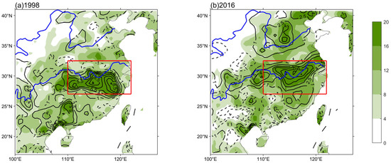 - Yuan, Y.; Gao, H.; Li, W.; Liu, Y.; Chen, L.; Zhou, B.; Ding, Y. The 2016 summer floods in China and associated physical mechanisms: A comparison with 1998. J. Meteorol. Res. 2017, 31, 261–277. [Google Scholar] [CrossRef]