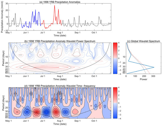 3.1. The Intraseasonal Features of Summer Precipitation over the YRB in 1998 and 2016