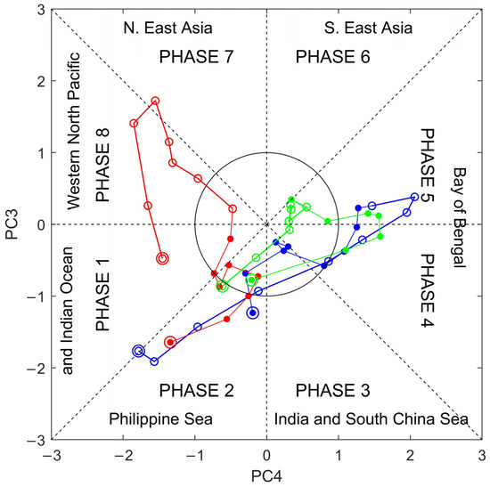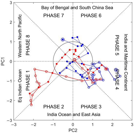 - Lee, J.-Y.; Wang, B.; Wheeler, M.C.; Fu, X.; Waliser, D.E.; Kang, I.-S. Real-time multivariate indices for the boreal summer intraseasonal oscillation over the Asian summer monsoon region. Clim. Dyn. 2013, 40, 493–509. [Google Scholar] [CrossRef]