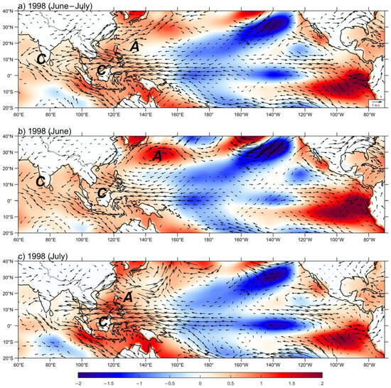 3.2. The Evolution of BSISO1 and Its Impact on Yangtze Rainfall in 1998
