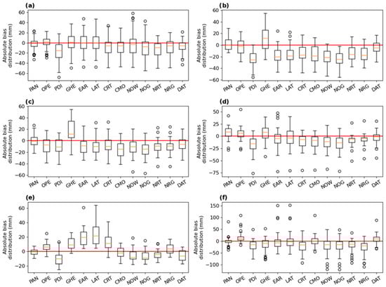 In this study, we consider the original spatial resolution of the RADOME network as a reference. Hence, we compare the observed punctual rain-gauge values to their respective nearest estimated pixel by using the widely used point-to-pixel approach [,,,,]. Moreover, the comparisons between the rain-gauge data and the diverse rain products were performed on the accumulated rain values obtained at the end of both case studies presented in Section 2.3. For each point–pixel considered (i), an absolute bias was calculated according to: BIASi = Ei − Oi where O was the rain-gauge observations from the RADOME network while E was the estimations given by each precipitation product (i.e., radar or satellites) used in this study. Thus, a positive or negative bias corresponds, respectively, to an overestimation or an underestimation of the used precipitation product compared to rain-gauge observations.