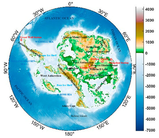 Antarctic terrain and China’s Antarctic scientific research sites.
