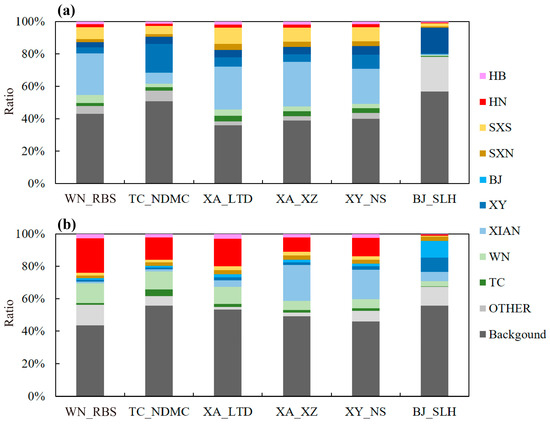 For these cases, modeled concentrations of air pollutants were separately marked as fbase, fall_zero, fSource_region, and fSource_region_zero. For example, local contributions from Xi’an and transport contributions from other source regions [i, i = 1–9] were calculated with the following equations: